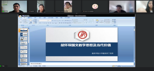 此次课程思政示范课中,丁高奎老师以“胡怀琛国文教学思想及当代价值”为主题,从国文思想的发展历程、主要内容及现实效力三大部分进行内容的分享与研讨,提出胡怀琛国文教学思想以课外阅读、作文教学、课堂教学三大部分内容构成,从相关的教学内容延展到现实教学,得出优秀的教师应先谈专业知识,再论教育观念;教育与自我教育相互转化,最终以自我教育为旨归的重要教学理念,对胡怀琛国文教学思想的内涵展开深入解读。