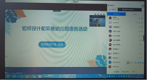 12月1日上午,汉滨区幼儿园陈萍主任利用腾讯会议的形式为公司2020学前教育本科同学进行了一场题为《如何设计和实施幼儿园语言活动》线上专题讲座。