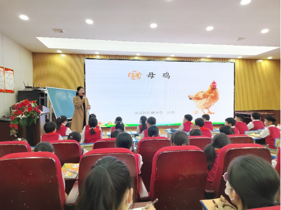 红旗小学师生对公司师范生的到来表示了热烈的欢迎,汪琪老师和张喻老师分别带来了两节精彩生动的示范课。汪老师讲授了课文《母鸡》,通过活灵活现的动物图片导入课程,充分引导员工发现并描述母鸡的特点,在识字读词、分析情感等教学环节中均展现其教学特色,在员工的积极回答中串连起文章脉络,注重核心素养的渗透,其教学方法使师范生们受益匪浅。张喻老师讲授古诗《枫桥夜泊》,课堂氛围充满了诗情画意,通过对诗句的解读,引领员工们发挥想象力去感受其所描绘的景语,教学细节环环相扣,使师范生们切身学习到如何讲授一节完整的古诗赏析课,最后,张老师所展示的行云流水般的书法也让大家有所学习。