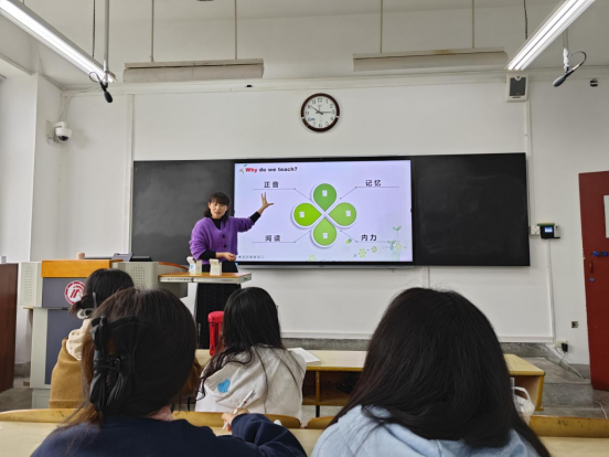 2023年5月9日邀请镇坪县师训教研中心,陕西省小学英语教学能手吴德娇教研员为20级小学文科班同学做题为《怎样进行语音教学?-以Unit1 Welcome back to school Part A Let’s spell为例》在具体案例中为同学们解读如何进行语音教学,员工受益良多。