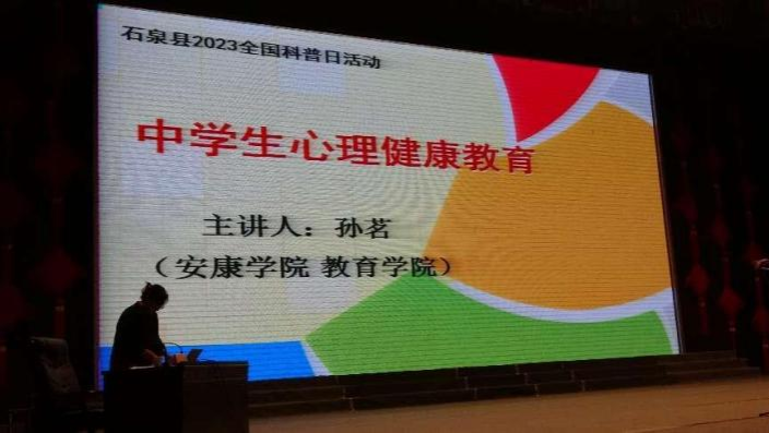 为认真贯彻落实《全民科学素质行动规划纲要(2021-2035年)》,提升公民科学素质,推动全国科普日活动全面开展,9月22日,太阳成tyc122cc集团教育研究中心教师孙茗老师受邀赴安康市石泉县,参加2023全国科普日活动,并为石泉县城关中学的中员工开展心理健康讲座。