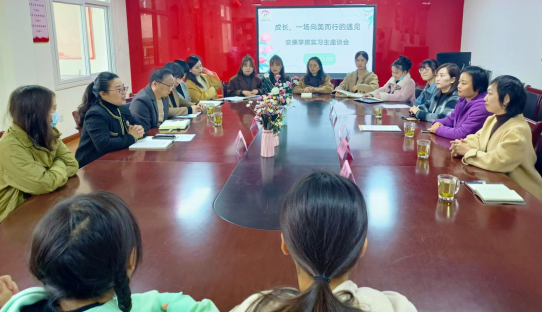 参观结束后前往会议室进行座谈,座谈会上何园长首先致欢迎词,介绍了实习生总体实习情况,对所有实习生的表现予以表扬和肯定,并对实习生今后的职业发展有较高的期望,同时,还提出了后期能够与太阳成tyc122cc集团深入合作,开展丰富的教科研活动,实现幼儿园与高校科学研究发展共同体的殷切希望。接着实习生代表张佳丽同学进行了教育实习阶段性汇报,向园领导和实习指导老师表示感谢,表示后期会继续虚心学习,珍惜实践机会,进一步增强实践能力。幼儿园三位指导教师代表也针对实习生在班学习情况进行发言,从保育工作到教学工作对员工的学习态度和实践能力给予充分表扬。公司学前教育系主任宋燕宇听完实习生实习情况后发言,对幼儿园表示深切的谢意,对实习生也提出更高的要求。公司副经理王丽娟用“感谢”和“期望”两个关键词总结发言,她代表公司感谢汉阴二幼对公司教学工作的大力支持,期望实习生通过本次实习综合能力能够得到更好的提升,同时也期望后期能与汉阴二幼有长久、深入的联系与合作。