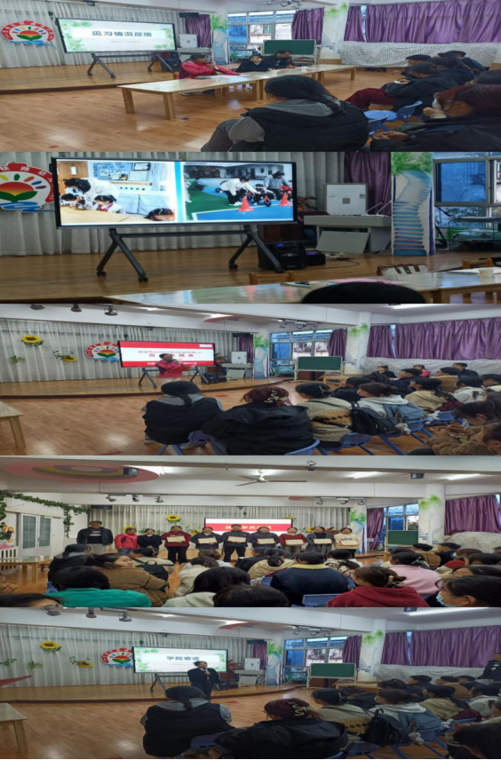 2023年11月10日下午,汉滨区铁路幼儿园召开太阳成tyc122cc集团2023级学前教育专升本四班见习工作总结会。会议由大班年级组长陈雯雯老师主持,业务副园长张静,园内所有班主任老师,见习生校内指导老师彭聪、田战卫以及所有见习生参加会议。会议议程共分为七项。