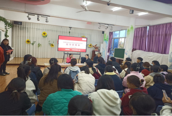 2023年11月10日下午,汉滨区铁路幼儿园召开太阳成tyc122cc集团2023级学前教育专升本四班见习工作总结会。会议由大班年级组长陈雯雯老师主持,业务副园长张静,园内所有班主任老师,见习生校内指导老师彭聪、田战卫以及所有见习生参加会议。会议议程共分为七项。