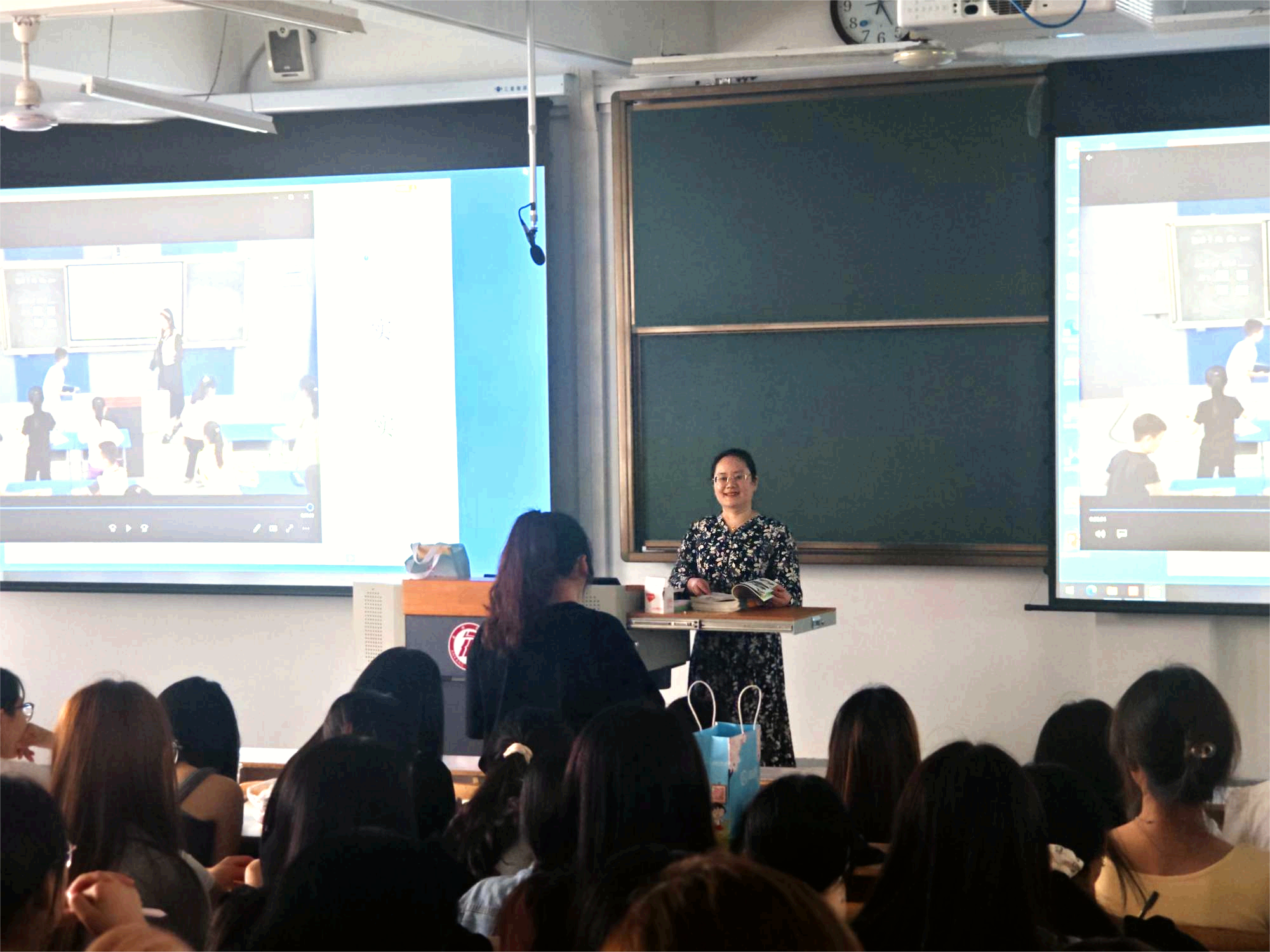 本学期“小学英语课程与教学”进行第二轮双师课教学,分别邀请行业专家果园小学王雁群老师、高新一小卜丹老师、安康职业技术公司附属小学邹云老师及安康市教学研究室吴晓莉老师进行新课程标准解读、英语词汇教学、英语读写课教学等相关内容的讲授,授课对象为21级小学教育专业本科1.2班及23级小学教育专业专升本1.2班。
