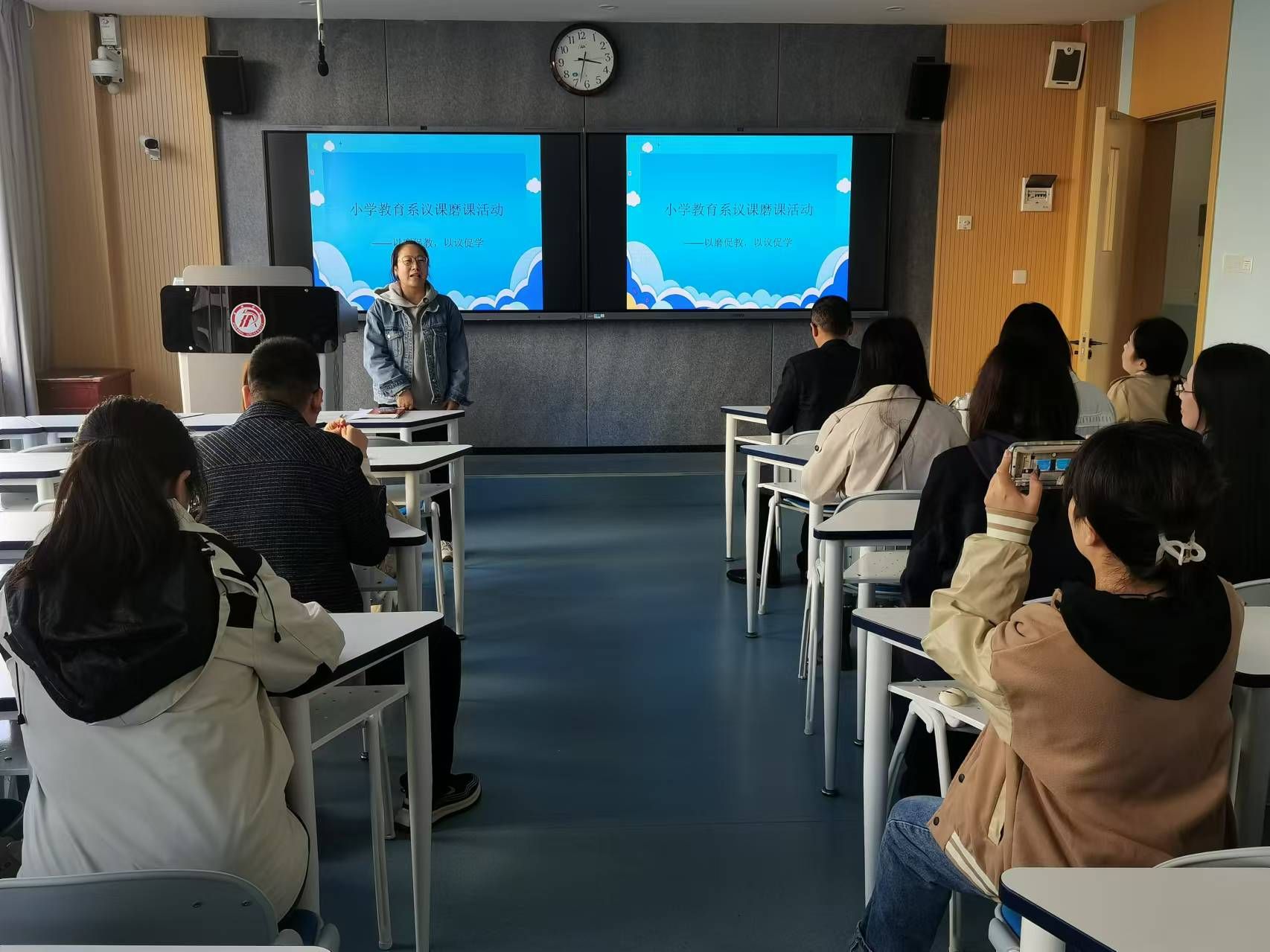 支部书记、小学教育系系主任陈珂首先明晰了议课磨课初衷,阐明了教学对于人才培养的重要性。其次,为了达到议课磨课的效果,同志们前期进行了为期两周的相互听课,涉及《线性代数》、《小学教育学》、《自然科学基础》等11门课程,与会党员教师从听课实际出发,分别从教学内容、员工抬头率、教学方法等方面讨论了教学的优点、不足、启示。最后,陈珂同志进行总结审核评估,党员教师要起模范带头作用,要守好课堂阵地,她强调,各位党员教师要注意现代信息技术辅助教学的作用、教学方法灵活使用的问题、课程思政融入及课堂纪律管理等问题。