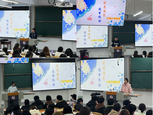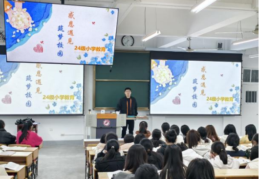 活动分为三个环节,首先郑明炬从感知何为感恩、理解懂得感恩、行动践行感恩三个方面,为同学们带来了一场深入浅出的感恩教育。通过生动的故事和案例,引导同学们思考感恩在日常生活中的重要性,帮助他们理解感恩不仅仅是一种情感表达,更是一种积极的生活态度和行动力量;同学们认真聆听,积极互动,对感恩有了更为深刻的认识。