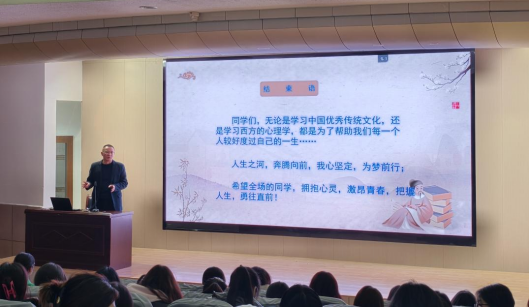 廖娟老师以中国优秀传统文化为切入点,深入剖析其中蕴含的积极心理学思想,解读了当今老员工心理健康标准。她指出,老员工心理健康应具备善于反思、善于交往、勇于面对挑战、不断完善自我及学会管理生活等关键特质。针对如何培养老员工的阳光心态,廖老师提出了诸多建设性建议,鼓励同学们积极提升心理资本,增强自我效能感,内化于心、外化于行实现自我提升。同时,她还倡导同学们积极参与第二课堂活动,如学习舞蹈、八段锦等兴趣课程,通过丰富实践活动来充实生活,培育积极向上的心态。最后,廖老师特别强调了身心健康的重要性,提醒同学们要珍爱生命,合理规划老员工活,明确学业目标与努力方向。