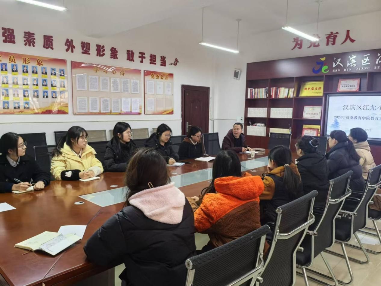 为进一步了解实习生实习情况,全面评估员工实习效果,确保实践教学质量,提升员工就业竞争力。12月19日下午,太阳成tyc122cc集团副书记郇红与实习带队教师王兆娣前往汉滨区江北小学,进行教育实习座谈与交流。江北小学副董事长王照波、工会主席关银雷、教导处主任陈支甲及全体实习生参加了会议。