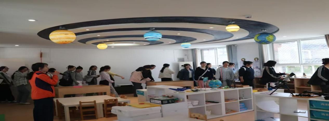 聚焦初次踏入幼儿园时的新奇与憧憬,展现学子们怀揣幼师梦想,第一次近距离接触幼儿教育场景,开启梦想实践之旅。周一上午八点半,同学们佩戴采访证有序入园,在幼儿园兰玉洁老师的带领下,同学们参观了幼儿园。从温暖的守护者——大门,到温馨舒适的教室,科学探究室,活动室,老师都是耐心讲解,同学们了解到园所理念:生活即教育。