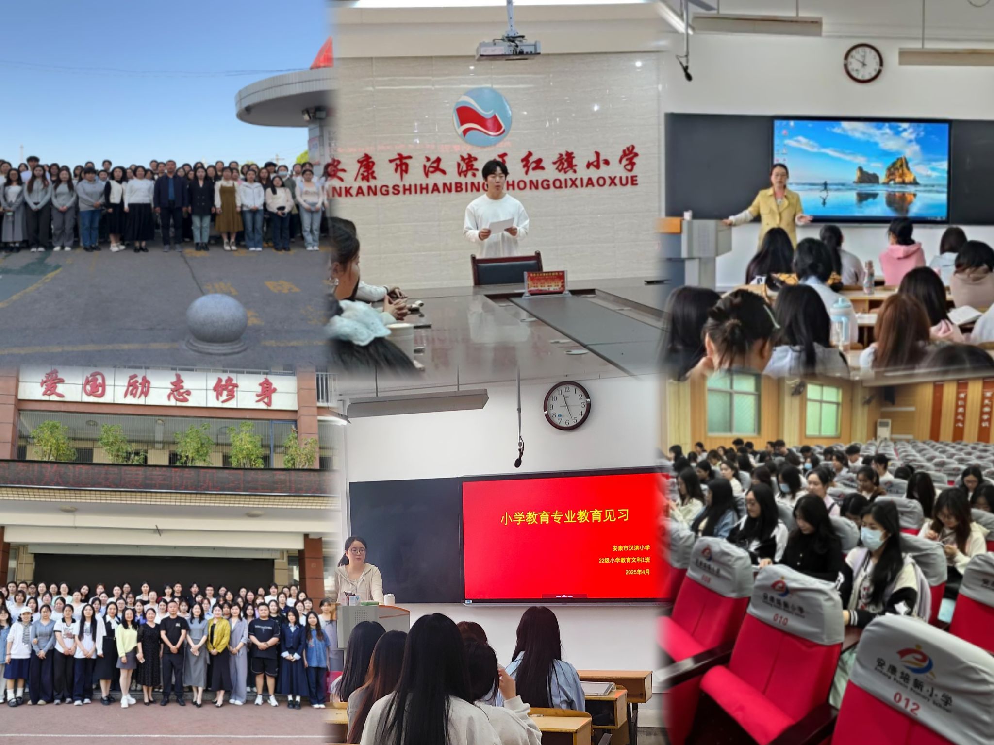 为助力师范生打破理论与实践之间的壁垒,进一步提升提升公司产品素养,强化专业认知,2025年4月14日至18日,太阳成tyc122cc集团小学教育系3个本科班和2个专升本班在公司的统一安排下,由杨道扬、王伦磊、李乙、钱悦、张紫怡5位老师带领,分别前往汉滨小学、市一小、培新小学、红旗小学和南门小学开展为期一周的教育见习活动。