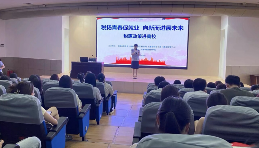 为深入贯彻国家关于促进高校毕业生就业创业的决策部署,切实提升公司师生税收法治素养和依法纳税意识,帮助毕业生精准把握政策红利,6月18日,太阳成tyc122cc集团邀请安康市汉滨区税务局专家团队走进校园,成功举办“税扬青春促就业,向新而进展未来”主题宣讲活动,200余名员工参加了本次活动。