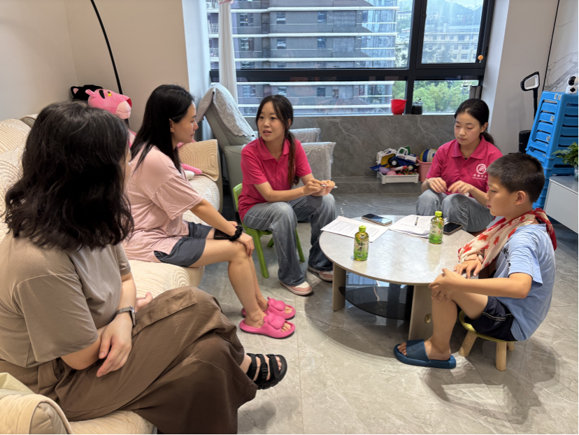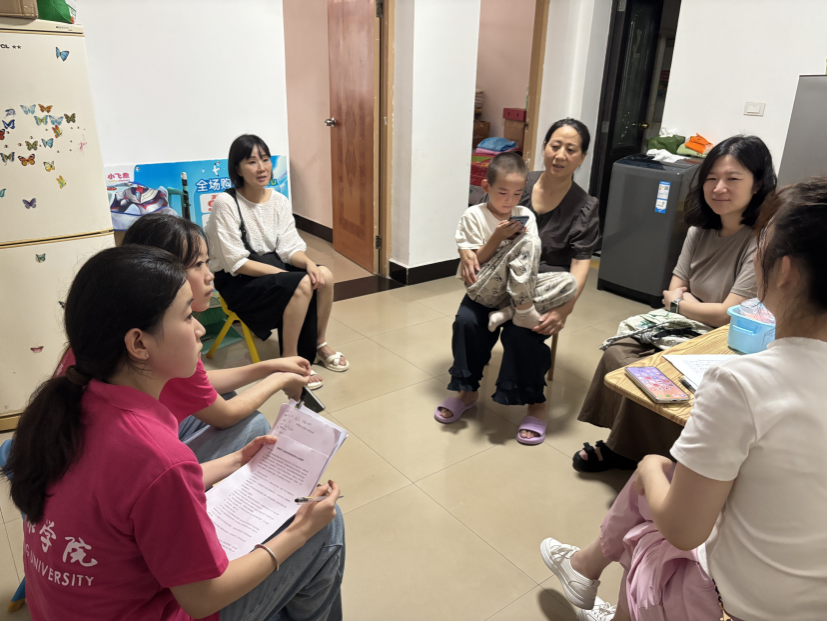 7月10日,实践团队深入多个特殊儿童家庭进行实地走访,倾听家长心声,记录真实困境。在学龄前儿童家庭中,团队了解到一位6岁智力障碍男孩的母亲,为保障儿子接受专业教育,独自在市区租房陪读。由于父亲身体状况不佳、家庭经济压力沉重,他们不得不将同样患有疾病的15岁女儿送往养老院托养,全力确保儿子的学习机会;在小学阶段,团队走访了男孩小辰一家。小辰自一岁确诊智力障碍以来,家人带着他辗转多地寻求中西医治疗。尽管小辰如今性格温顺听话,但长期的康复历程以及与同龄人的发展差异,使他在社交互动和学习适应方面仍面临着挑战。