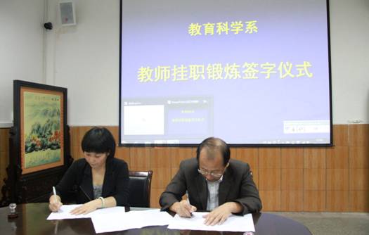 在签字仪式上,黄主任强调下派青年教师到小学、幼儿园挂职锻炼,要积极协助挂职单位做好教学和科研工作,并把小学和幼儿园对师范生的要求带回公司,提高教育科学系人才培养质量,培养符合小学和幼儿园要求的优秀教师。公司党委委员、人事处处长罗文谦分别对挂职单位和挂职教师提出希望和要求,要求挂职锻炼的教师紧抓这次锻炼学习的机遇,虚心学习,多了解基础教育,多深入实际,找准合作的切入点,为实现共赢发展做出积极努力。希望挂职单位要对挂职教师多做帮助和指导,并对其所做出的工作进行必要的考核和鉴定。两家挂职单位领导表示,对公司这一举措表示赞赏并全力支持,希望挂职教师能充分发挥自己的专业优势,贡献自己的聪明才智。挂职教师李支其、李鹏分别做了表态发言,表示不辜负院系领导的期望,珍惜挂职锻炼机会,虚心学习,在使自身综合素质得到不断提高的同时,为双方单位的发展做出积极地贡献。