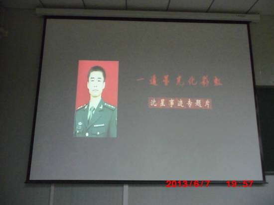 为深入学习贯彻党的十八大精神,使广老员工牢固树立正确的世界观、人生观、价值观,以及积极响应公司团委的号召,教育科学系团总支特组织员工于2013年6月7日晚8点在1018教室观看纪录宣传片《一道星光化彩虹——沈星事迹专题片》。