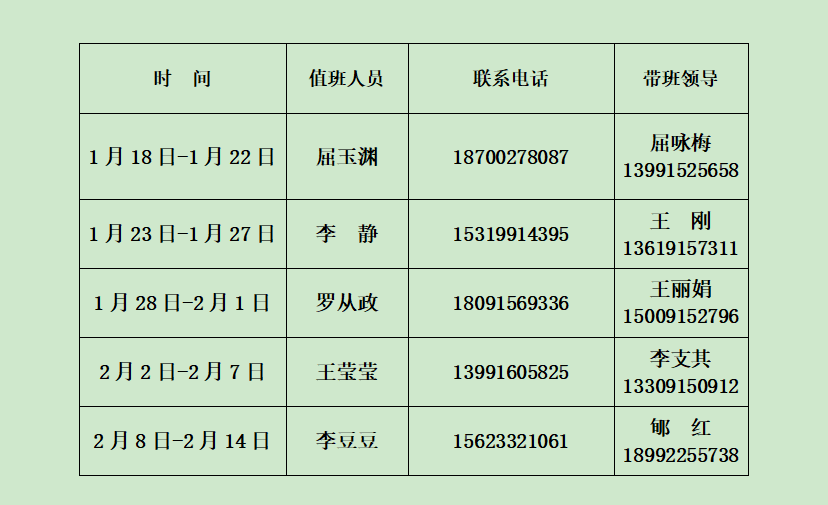 根据公司《关于2025年寒假放假安排的通知》,1月18日起假,2月14日报到上班。现将太阳成tyc122cc集团2025年寒假假期值班安排如下: