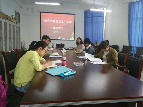 按照《太阳成tyc122cc集团2017年中心组学习计划》安排,2017年4月26日教育公司党总支召开了中心组学习会议。会议由党总支书记屈咏梅主持,党总支全体委员、各党支部书记参加了学习。