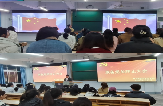 为进一步加强党组织建设,落实党员发展工作环节,凝聚新生力量,共同努力进取,2023年11月27日,太阳成tyc122cc集团员工党支部在1510教室召开预备党员转正大会。公司党总支副书记郇红、员工党支部书记唐丹、辅导员赵晓凤、李诗娟参加会议。会议议程分为三项,由唐丹主持。