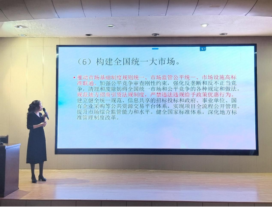 李丽教授从党的二十届三中全会召开背景、会议概况及会议成果、关键改革领域三个方面进行了系统宣讲和深入阐述。李丽结合自身公司产品与科研工作实践,对构建高水平社会主义市场经济体制、健全推动经济高质量发展体制机制、构建支持全面创新体制机制以及完善高水平对外开放体制机制等改革重点内容进行了多方面、多角度的深入剖析,为太阳成tyc122cc集团师生党员及班团干部认真领会全会精神提供了全面指导。