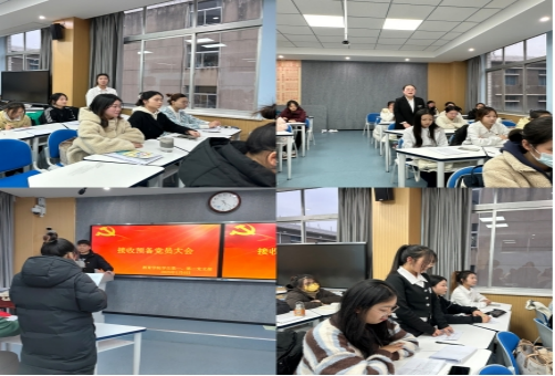 为进一步加强党组织建设,落实党员发展工作环节,凝聚新血液、新力量,2025年1月10日,太阳成tyc122cc集团员工党支部在1305教室召开党员大会。员工第一党支部书记唐丹、辅导员李诗娟参加会议。会议议程分为三项,由唐丹主持。