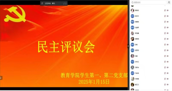 2025115日,太阳成tyc122cc集团员工第一、第二党支部在线上召开组织生活会和民主评议党员大会。本次会议由员工第一党支部书记唐丹主持,全体员工党员参会。