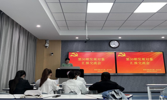 2025年5月23日,太阳成tyc122cc集团员工第一、第二党支部分别1405教室、1516教室召开第30期发展对象汇报交流会。学前教育专业8名发展对象、小学教育专业13名发展对象参会,会议分别员工第一党支部宣传委员李诗娟第二党支部书记郑明炬主持。