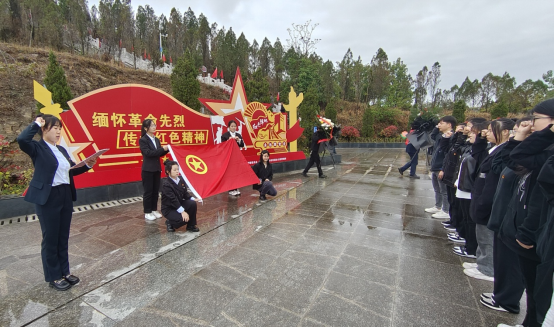 活动伊始,在庄严的英雄纪念碑前全体师生奏唱国歌。随后,团总支副书记张恬向同学们介绍了清明节的由来、文化内涵、传说及习俗等,让同学们从中感受到中华传统文化的丰富内涵,增加同学们的文化知识和对祖国的热爱之情。其后,团总支书记李静在英雄纪念碑下讲述团课,激励同学们应继承先烈遗志,展望未来,为家乡的建设、祖国的繁荣富强而努力学习。在学习团课后,四名员工代表以朗诵的形式缅怀革命先烈,充分展现了公司学子将继续弘扬爱国主义精神的坚定意志。紧接着,由团总支副书记张恬带领同学们重温入团宣誓,同学们面向团旗,高举右拳,庄重宣誓,用实际行动传递着在场每一位团员对祖国的热爱。最后,全体同学挥动手中国旗,共同合唱团歌,并集体合照留影。至此,此次“清明祭英烈,丰碑励青春”主题团日活动圆满结束!