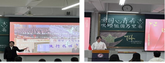 为热烈庆祝中华人民共和国成立74周年,厚植员工党员爱党爱国情怀,弘扬爱国主义精神,充分发挥“以党建带团建,以团建促党建”的实效,太阳成tyc122cc集团员工党支部联合团总支员工分会共同开展了“党团共建展画卷 欢颂祖国万里春”爱党爱国主题演讲比赛。唐丹、李乙、杨道扬以及团学代表和员工党支部代表担任比赛评委。