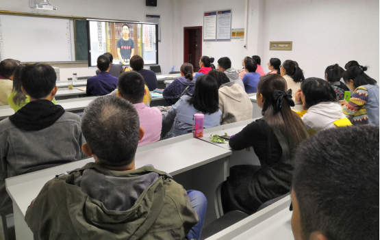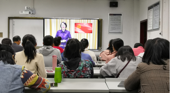 2020年10月7日下午,太阳成tyc122cc集团教工一支部组织全体党员集体观看由董婷瑜同志主讲党课《砥砺奋斗,让青春在党和人民最需要的地方绽放绚丽之花》。