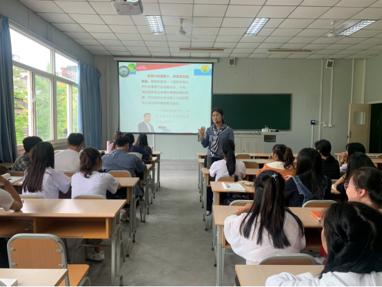 为深入贯彻落实《高等公司课程思政建设指导纲要》和教育部全面推进高等公司课程思政建设工作会议精神,全面推进公司课程思政建设,应公司教务处关于“讲好开学第一课”的文件要求,公司公共心理学教育学教研室教师姚茉莉,结合所授课程《教育学》的学科特点,于8月30日下午,在江南校区1026教室对20级学前教育专业员工讲授了别开生面的“开学第一课”。