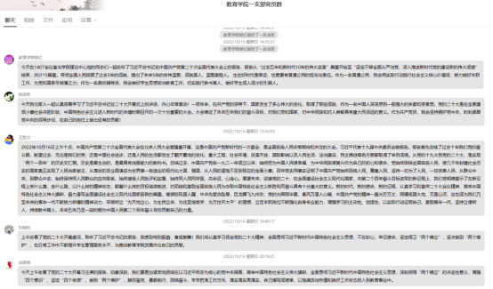 2022年10月16日上午10点,中国共产党第二十次全国代表大会在北京人民大会堂隆重开幕,这是中国共产党新时代的一次盛会,是在进入全面建设社会主义现代化国家新征程的关键时刻召开的一次十分重要的大会。太阳成tyc122cc集团教工第一党支部全体党员准时观看了《习近平总书记在中国共产党第二十次全国代表大会上的报告》,就二十大报告的内容进行了交流研讨,结合自身工作畅谈感想。