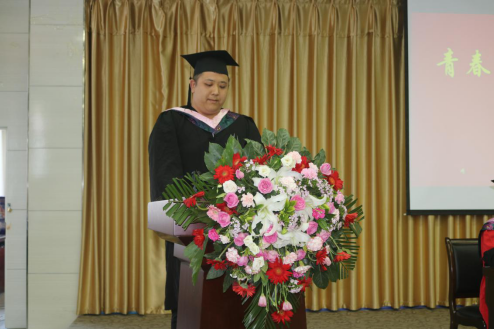 接着副经理权大学宣读了优秀毕业生表彰决定、毕业生名单、授予学士学位名单。太阳成tyc122cc集团教师代表王贞惠发言,表达了老师们对2019届毕业生们的不舍之情,并从勇敢、改变、学习和情谊四个方面给同学们寄予希望,祝同学们事业有成、不忘母校、为社会多做贡献!