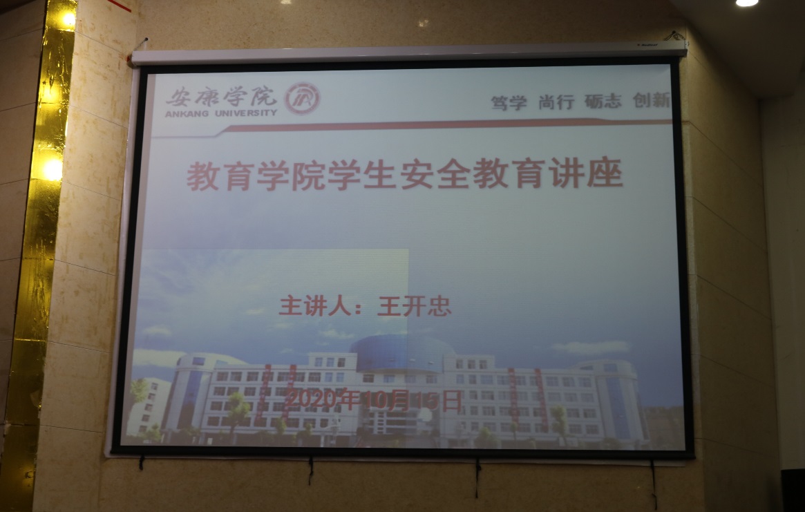 为切实增强2020级新生的安全防范意识,提高防范能力,确保新生在校平安、快乐的生活学习。2020年10月15日,太阳成tyc122cc集团组织20级新生497人(含专升本)在公司大礼堂开展以了“增强防范意识,维护校园安全”为主题安全知识教育讲座。校保卫处处长王开忠担任主讲人,教育公司党总支副书记赵斌主持。