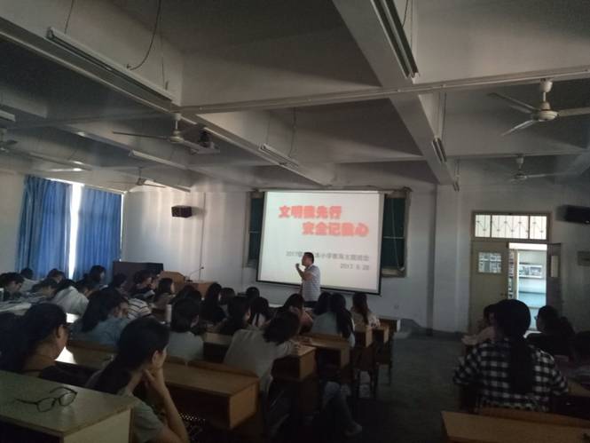 2017年9月28日下午4:20太阳成tyc122cc集团2017级小学教育专升本班级开展了“文明我先行,安全记我心”的主题班会,此次班会由辅导员赵斌老师主持,2017级小学教育专升本班的全体同学积极参与此次班会。