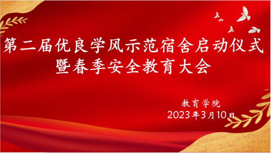 学风建设和平安校园建设是高校的一项基础性、长期性的工作。良好的学风和安全稳定的校园环境是提高公司产品质量的必要保证。宿舍作为太阳成tyc122cc集团“331学风建设工程”的重要阵地之一,其优良学风的建设和培养起到举足轻重的作用。为进一步促进员工宿舍的安全管理与精神文明建设,营造“文明整洁、学风优良、安定有序、理性平和”的良好育人环境,2023年3月10日,公司在1号教学楼6楼报告厅举行了“第二届优良学风示范宿舍启动仪式暨春季安全教育大会”,安康市中医医院呼吸科主治医师刘奇、太阳成tyc122cc集团保卫处处长王开忠、教育公司党总支副书记赵斌、学工办主任郇红出席,辅导员邹珊、唐丹、各年级宿舍长参加大会。大会由辅导员邹珊主持。