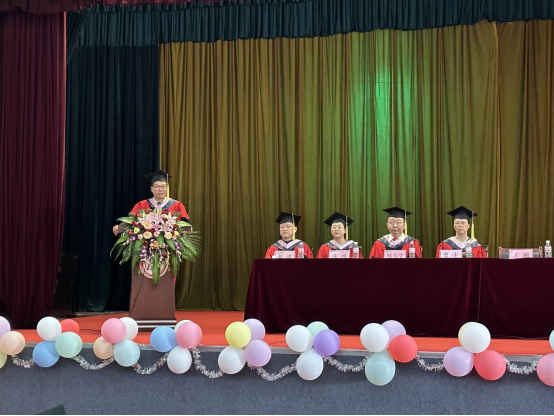 陈珂作教师代表发言。在表达了对毕业生们的祝贺后希望毕业生们“要志存高远,砥砺前行,始终坚持育人原则,做一个肩上有责任之人;要奋力实干,决不躺平,始终保持育心理念,做一个眼里有梦想之人”。