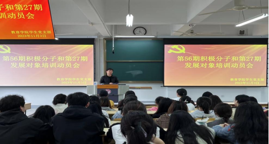 为了让新一期入党积极分子、发展对象深入了解培训班的内容、目标及培训过程在党员发展中的重要性,让学员们以良好的精神状态和明确的规矩意识顺利进入培训学习状态。2023年11月3日,太阳成tyc122cc集团员工党支部于1510教室召开了第56期积极分子和第27期发展对象培训动员会。