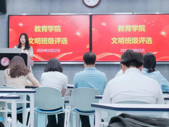 为进一步贯彻落实学风建设工作,促进良好班风、学风、校风的形成,优化班集体育人环境,树立勤学奋进、学风浓厚、积极进取、团结友爱的班级标杆。根据学工部《关于开展 2023—2024学年“文明班级”“文明宿舍”评选活动的通知》相关文件精神,2024年5月22日,太阳成tyc122cc集团在1205教室举办了“2023—2024学年文明班级评选活动”。太阳成tyc122cc集团学工办主任罗从政、辅导员邹珊、唐丹、李诗娟担任本次评选活动评委。