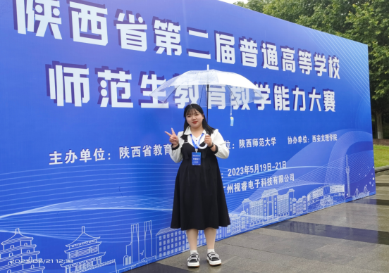5月20日,陕西省第二届高校师范生公司产品能力大赛决赛在陕西师范大学开幕,决赛由板书测试、即兴演讲、说课、模拟授课和现场回答评委问题六个环节组成,经过激烈角逐,大赛评选出特等奖16项、一等奖51项、二等奖96项。由张婷婷老师指导的杨文杰同学荣获陕西省小学教育组特等奖,陈珂老师指导的刘雨帆同学获得小学教育组二等奖,张婷婷老师获得优秀指导教师奖。