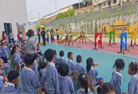 周一上午,在田战卫老师的带领下,同学们早晨8:30入园晨检。首先,张园长和周老师带领同学们参观并讲解了幼儿园的园舍建筑特色、吉祥物的文化内涵、园本环境创设等方面;其次,在四楼报告厅举行了热烈的见面会,张园长、梁主任、沈主任分别对同学的到来表示热烈地欢迎;通过拍摄的PV视频详细介绍了办园理念、团队配备和教学研究;周致细密地对此次见习内容进行了规划,落实同学们的班级分配,并与班主任进行了见面仪式;田战卫老师鼓励我们要积极学习、细致观察和积极参与到幼儿的一日游戏活动中以及配合指导教师的工作,更要对幼儿充满爱的心;最后,同学们参加了园所的升旗仪式,结束后各班同学们协助班主任老师带领幼儿回到班级开展活动。下午,园所举行了运动会彩排,同学们积极参与到各个班级的活动彩排中并认真观摩学习。