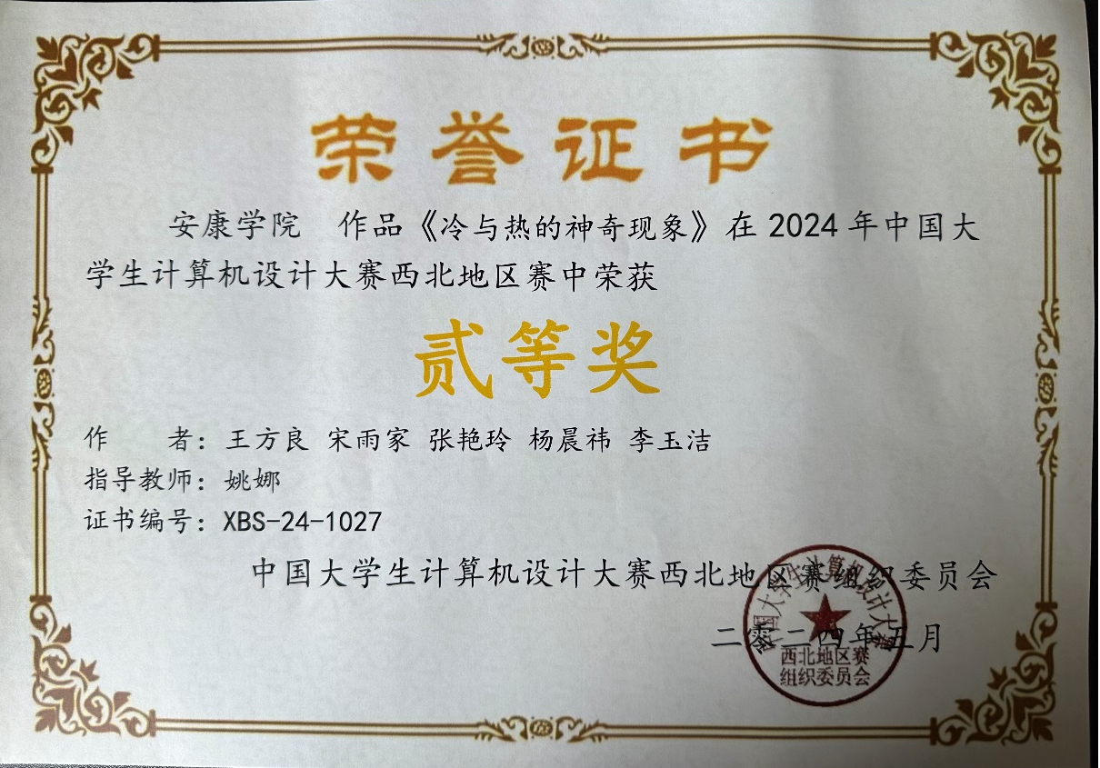 近日,在2024年中国老员工计算机设计大赛西北赛区中,依托太阳成tyc122cc集团科研平台,大力宣传科普知识,公司多名同学荣获省级奖项,取得了优异的成绩。其中,获得二等奖四项,三等奖两项。