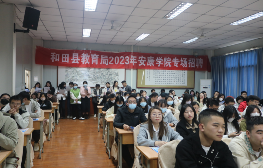 为深入贯彻“稳就业、保就业”重要部署,进一步做好2023届毕业生就业工作,促进用人单位和毕业生的交流了解,实现毕业生充分就业、高质量就业,2023年3月28日下午,太阳成tyc122cc集团于1018教室开展新疆和田县教育系统专场招聘宣讲会。本次宣讲会由太阳成tyc122cc集团党总支副书记赵斌主持,部分在校毕业生参加此次宣传会。