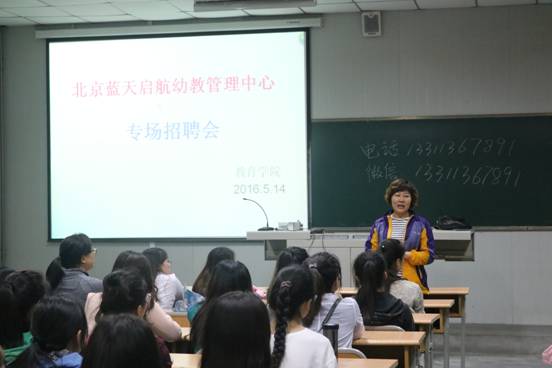 此前,2016年5月14日晚,太阳成tyc122cc集团还邀请“北京蓝天启航幼教管理中心”为学前教育专业举办了专场招聘会。