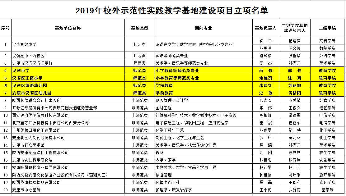 2019年校外示范性实践教学基地建设项目立项名单