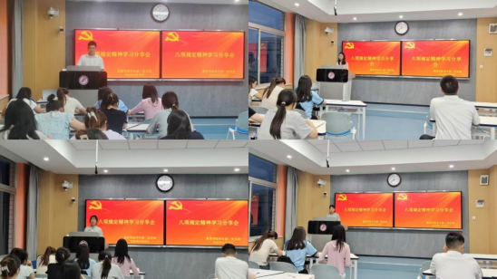 随后员工党员结合自身经历分享感悟。杜慧果谈到“将在未来的生活中持续加强理论学习,不断增强纪律意识和规矩意识,从点滴小事做起,严格约束自己的言行。”许楠楠表示“将始终牢记党员身份,传承和发扬中央八项规定精神,以实际行动为党旗增光添彩,为实现中华民族伟大复兴的中国梦贡献青春力量。”党员们将准则要求与作风建设有机结合,生动展现了新时代小学教育学子,以实际行动践行“立德树人”使命的思想自觉与行动自觉。