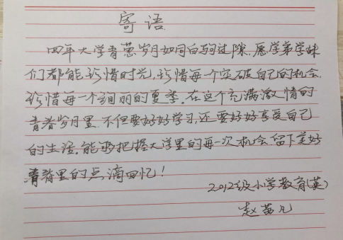 学姐寄语:无论怎样,希望在未来的日子里,学弟学妹们可以更好地面对未来的学习与生活,希望我们有一个无悔的青春,也愿我们历尽千帆,归来仍是少年。